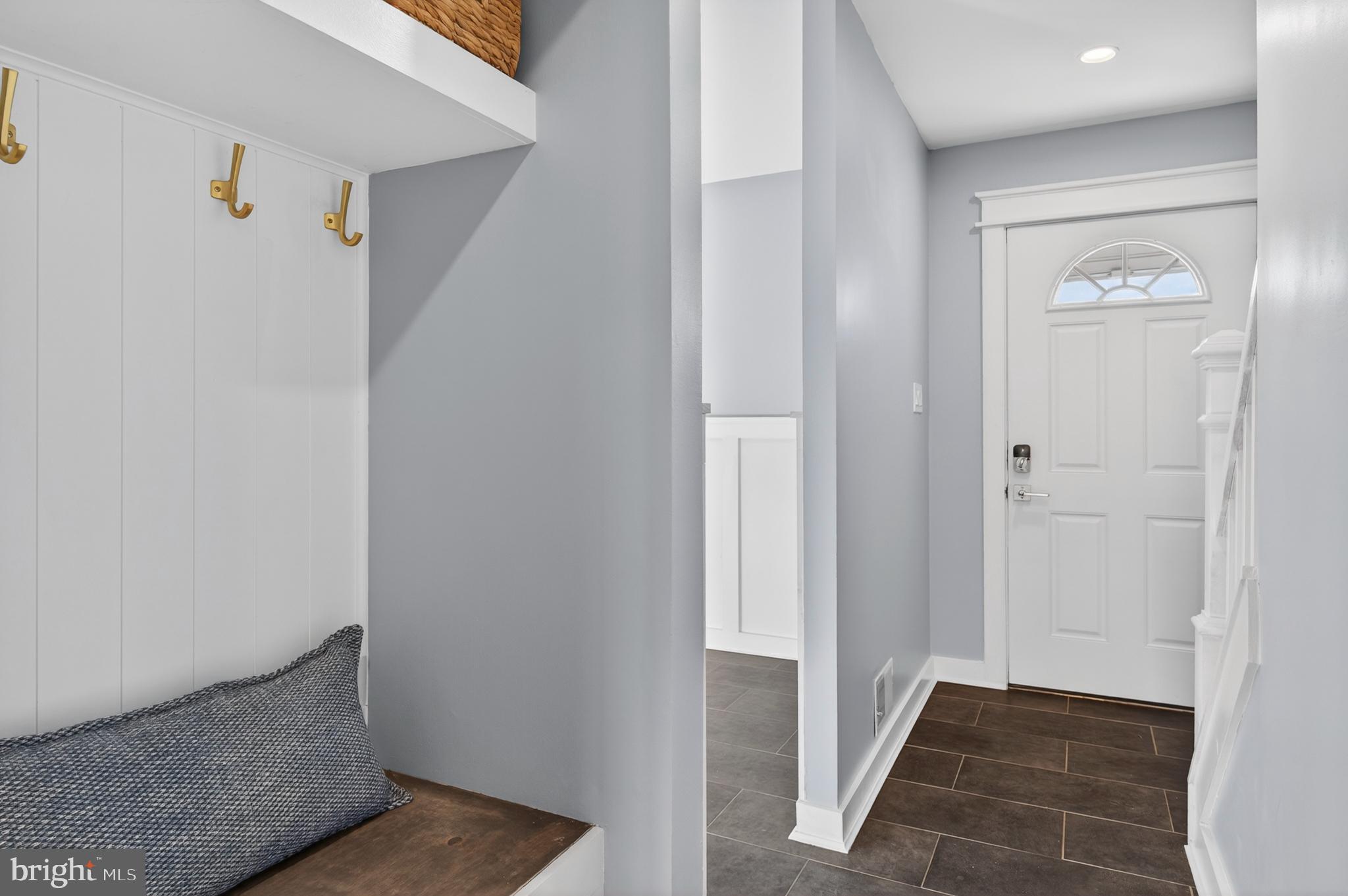 Completely renovated from top to bottom with loads of great design details! Beautiful custom kitchen features built-in window seat, deluxe Shaker paneled walls, tile backsplash, a pantry, extra cabinet space and perfectly selected tile floors. Large living room with a gorgeous wall of expertly trimmed shelves and pretty and durable LVP flooring! Sliding glass doors in the living room fill the room with natural light and lead to the deck and fenced backyard-just perfect for entertaining! In the hall, there is a renovated powder room, and an adorable and useful coat nook and built in bench. The top level has two big bedrooms with ample closet space and a newly renovated tile bath. Lower-level rec room is the perfect escape! Laundry with a double sink and extra storage is also in the lower level. New Shaker-style doors and trim throughout! New carpet on the stairs! Prime location with excellent commuter routes, close to great shopping and dozens of restaurants! Hurry! It won't last long!