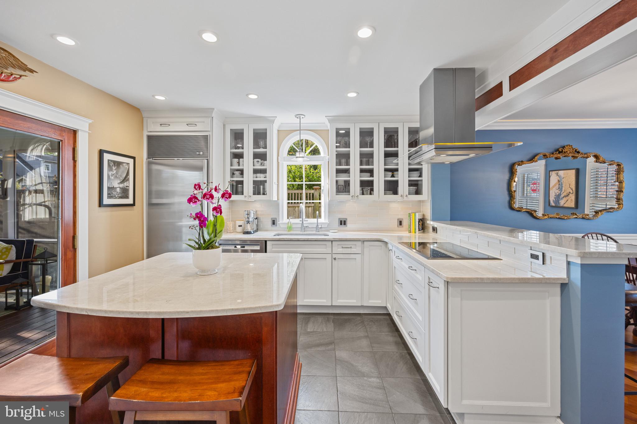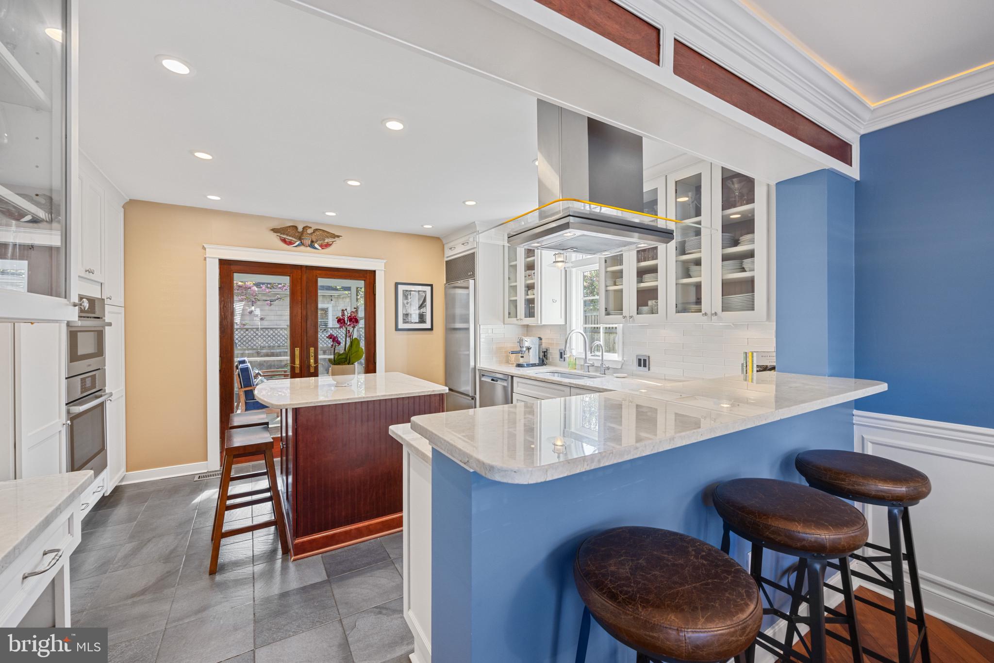 Unbelievable property and shear perfection in coveted Eastport! Newly and tastefully renovated, this home offers the very best condition with outstanding custom features. The perfect location, just one block from the Eastport Bridge, is a charming stroll to all the great restaurants and shopping, Historic Annapolis, The Academy and all DTA has to offer. Some of the great updates are maple hardwood floors, custom crown molding, a gourmet kitchen adorned with quartz countertops, high-end stainless steel appliances, and a breakfast bar with seating. The living room features a beautiful wood-burning brick fireplace, custom built-ins, and large double doors that open to an expansive brick and stone patio and terraced garden. The fully fenced yard boasts lots of privacy and great places to entertain or relax. All four bathrooms have been renovated with designer tiles and each of the three bedrooms have custom closets. The finished lower level includes a full bathroom, a surround-sound speaker system, and a surprise hideaway through a secret door leading to a custom speak-easy lounge. The screened-in porch off the kitchen extends the living area and will become a favorite space to dine and entertain.